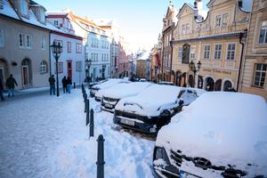 (260112) -- PRAGA, 12 enero, 2026 (Xinhua) -- Imagen del 11 de enero de 2026 de una calle cubierta de...