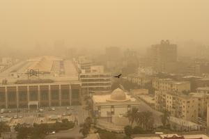 (260112) -- EL CAIRO, 12 enero, 2026 (Xinhua) -- Edificios son cubiertos por arena y polvo durante una tormenta de...