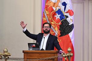 (260112) -- SANTIAGO, 12 enero, 2026 (Xinhua) -- El presidente chileno, Gabriel Boric, pronuncia un discurso durante la inauguración de...
