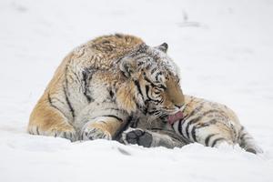 (260112) -- HARBIN, 12 enero, 2026 (Xinhua) -- Imagen del 12 de enero de 2026 de tigres en el Parque...