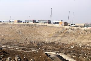 (260110) -- ALEPO, 10 enero, 2026 (Xinhua) -- Imagen del 9 de enero de 2026 de autobuses para evacuar a...
