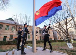 (260110) -- BEIJING, 10 enero, 2026 (Xinhua) -- Una ceremonia de izamiento de la bandera se lleva a cabo en...