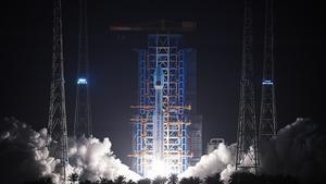 (260114) -- WENCHANG, 14 enero, 2026 (Xinhua) -- Imagen del 13 de enero de 2026 de un cohete portador Gran...