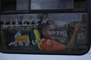 (260113) -- CARACAS, 13 enero, 2026 (Xinhua) -- Un hombre viaja en autobús durante una movilización, en Caracas, Venezuela, el...