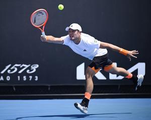 (260114) -- MELBOURNE, 14 enero, 2026 (Xinhua) -- Wu Yibing, de China, devuelve la pelota durante el partido de la...