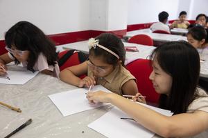(260114) -- LIMA, 14 enero, 2026 (Xinhua) -- Imagen del 13 de enero de 2026 de estudiantes pintando durante los...