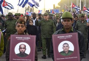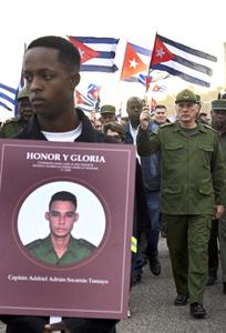 (260116) – LA HABANA, 16 enero, 2026 (Xinhua) -- Ciudadanos muestran fotografías de los militares cubanos fallecidos en el ataque estadounidense...