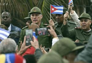 (260116) - LA HABANA, 16 enero, 2026 (Xinhua) -- El presidente cubano, Miguel Díaz-Canel (d-atrás), participa en una marcha frente a...