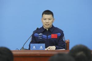 (260116) -- BEIJING, 16 enero, 2026 (Xinhua) -- El astronauta Wang Jie, de la misión tripulada Shenzhou-20 de China, habla...