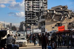 (260115) -- GAZA, 15 enero, 2026 (Xinhua) -- Imagen del 15 de enero de 2026 de personas caminando en un...