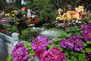 (260116) -- SINGAPUR, 16 enero, 2026 (Xinhua) -- Personas visitan una exposición floral celebrada en el Domo de las Flores...