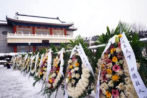 (260118) -- BEIJING, 18 enero, 2026 (Xinhua) -- Ofrendas florales son colocadas frente a la sede de la ceremonia de...