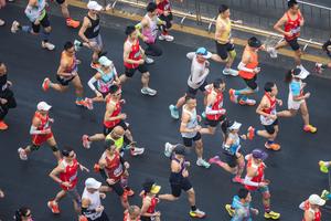 (260118) -- CHONGQING, 18 enero, 2026 (Xinhua) -- Competidores corren durante el Maratón de Chongqing 2026, en el distrito de...