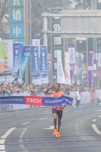 (260118) -- CHONGQING, 18 enero, 2026 (Xinhua) -- Adisu Tesfahun Tafere, de Etiopía, cruza la línea de meta y se...