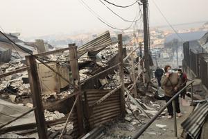 (260118) -- BIOBIO, 18 enero, 2026 (Xinhua) -- Una mujer reacciona frente a las casas destruidas durante de un incendio...