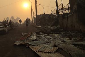 (260118) -- BIOBIO, 18 enero, 2026 (Xinhua) -- Personas reaccionan después de un incendio forestal, en Lirquén, en la comuna...