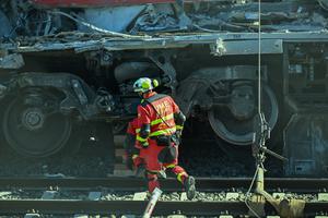 (260120) -- CORDOBA, 20 enero, 2026 (Xinhua) -- Rescatistas trabajan en el sitio de la colisión de tren de alta...
