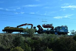 (260120) -- CORDOBA, 20 enero, 2026 (Xinhua) -- Maquinaria pesada se dirige al sitio de la colisión de tren de...
