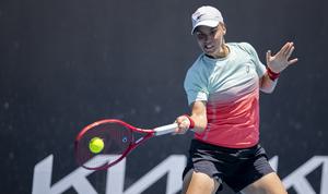 (260120) -- MELBOURNE, 20 enero, 2026 (Xinhua) -- Wang Xinyu, de China, devuelve la pelota durante el partido de primera...