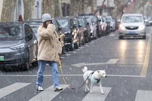 (260120) -- BEIJING, 20 enero, 2026 (Xinhua) -- Una mujer pasea a su perro en medio de la nieve, en...