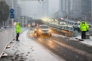 (260120) -- BEIJING, 20 enero, 2026 (Xinhua) -- Oficiales de policía dirigen el tráfico cerca del puente Jianghan, en Wuhan,...