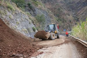 (260120) -- ZHAOTONG, 20 enero, 2026 (Xinhua) -- Trabajadores despejan una sección de una carretera tras un terremoto, en el...