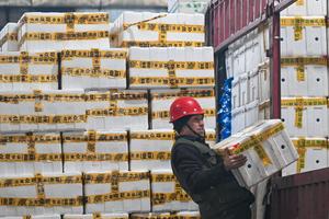 (260121) -- URUMQI, 21 enero, 2026 (Xinhua) -- Imagen del 19 de enero de 2026 de un trabajador descargando una...