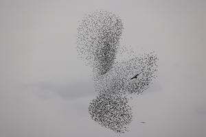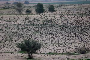 (260122) -- BE'ER SHEVA, 22 enero, 2026 (Xinhua) -- Una bandada de estorninos realiza un murmullo en el desierto de...