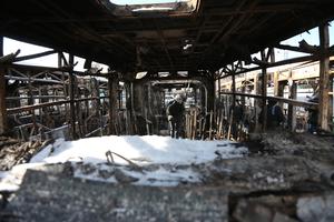 (260121) -- TEHERAN, 21 enero, 2026 (Xinhua) -- Un hombre camina frente a autobuses destruidos durante los disturbios recientes, en...
