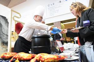 (260121) -- DAVOS, 21 enero, 2026 (Xinhua) -- Imagen del 20 de enero de 2026 de un participante degustando dumplings...