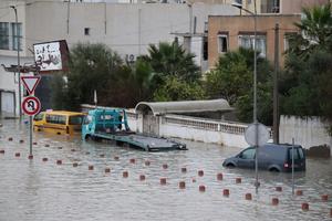 (260121) -- TUNEZ, 21 enero, 2026 (Xinhua) -- Imagen del 20 de enero de 2026 de vehículos varados en una...
