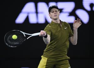 (260122) -- MELBOURNE, 22 enero, 2026 (Xinhua) -- Jannik Sinner, de Italia, devuelve la pelota durante el partido de segunda...