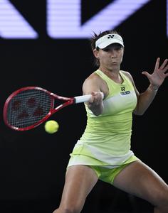 (260122) -- MELBOURNE, 22 enero, 2026 (Xinhua) -- Jelena Ostapenko, de Letonia, devuelve la pelota durante el partido de segunda...