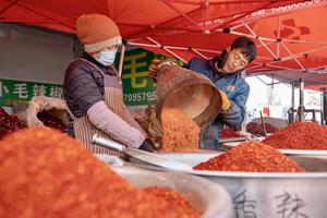 (260122) -- YINCHUAN, 22, enero 2026 (Xinhua) -- Imagen del 21 de enero de 2026 de vendedores preparando chile en...