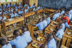 (260122) -- KIGALI, 22 enero, 2026 (Xinhua) -- Imagen del 20 de enero de 2026 de niños almorzando en su...