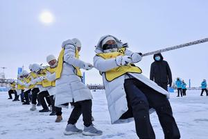 (260123) -- TONGJIANG, 23 enero, 2026 (Xinhua) -- Personas del grupo étnico hezhe participan en un deporte folclórico durante un...