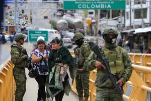 (260124) -- TULCAN, 24 enero, 2026 (Xinhua) -- Soldados ecuatorianos vigilan en el paso fronterizo de Rumichaca, en la frontera...