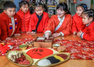 (260124) -- BEIJING, 24 enero, 2026 (Xinhua) -- Imagen del 23 de enero de 2026 de niños eligiendo ingredientes para...