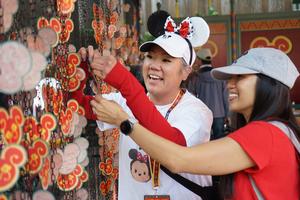 (260124) -- ANAHEIM, 24 enero, 2026 (Xinhua) -- Imagen del 23 de enero de 2026 de visitantes pidiendo deseos frente...