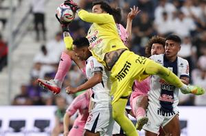 (260125) -- LIMA, 25 enero, 2026 (Xinhua) -- Imagen del 24 de enero de 2026 del guardameta Guillermo Viscarra (frente),...