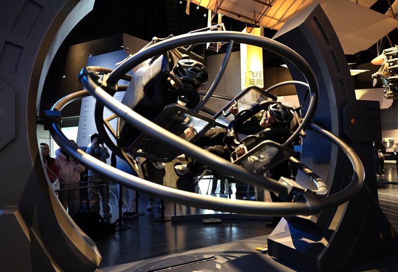 (260127) -- SHANGHAI, 27 enero, 2026 (Xinhua) -- Visitantes prueban un equilibrador de cuatro ejes en el Museo de Ciencia y Tecnología de Shanghai, en Shanghai, en el este de China, el 27 de enero de 2026. El museo inició el martes su prueba de estrés operativa después de más de dos años de modernización sistemática, invitando a algunos visitantes y a los medios de comunicación a visitarlo. Comenzará su apertura de prueba al público durante el Festival de Primavera. (Xinhua/Fang Zhe) (oa) (vf)