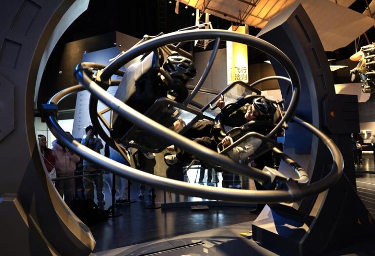 (260127) -- SHANGHAI, 27 enero, 2026 (Xinhua) -- Visitantes prueban un equilibrador de cuatro ejes en el Museo de Ciencia...
