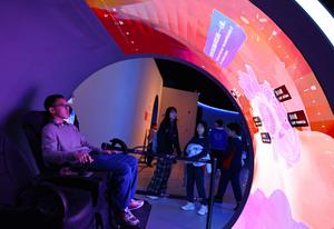 (260127) -- SHANGHAI, 27 enero, 2026 (Xinhua) -- Un visitante prueba un juego con sensores de movimiento en el Museo...