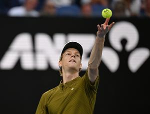 (260128) -- MELBOURNE, 28 enero, 2026 (Xinhua) -- Jannik Sinner sirve la pelota durante el partido de cuartos de final...