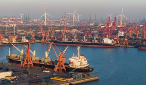 (260103) -- TIANJIN, 3 enero, 2026 (Xinhua) -- Grúas portuarias mueven contenedores en una terminal de contenedores del Puerto de...