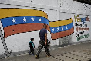 (260111) -- ANZOATEGUI, 11 enero, 2026 (Xinhua) -- Personas caminan frente a un mural, en el estado Anzoátegui, Venezuela, el...