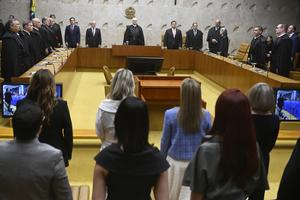(260202) -- BRASILIA, 2 febrero, 2026 (Xinhua) -- El presidente brasileño, Luiz Inácio Lula da Silva (3-i-atrás), y el presidente del Supremo Tribunal Federal (STF) de Brasil, Luiz Edson Fachin (c-atrás), asisten a la sesión de apertura del Año Judicial 2026, en la sede del STF, en Brasilia, Brasil, el 2 de febrero de 2026. Lula da Silva afirmó el lunes, durante la apertura del Año Judicial en el STF en Brasilia, que las elecciones generales de octubre impondrán el desafío de actuar con máximo rigor contra la manipulación digital y las noticias falsas para proteger la soberanía del voto. (Xinhua/Lucio Tavora) (lt) (rtg) (ah) (vf)