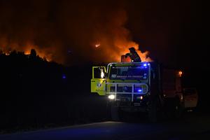 (260202) -- CHUBUT, 2 febrero, 2026 (Xinhua) -- Un bombero trabaja en el sitio de un incendio forestal, en la...
