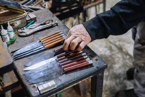 (260203) -- JALISCO, 3 febrero, 2026 (Xinhua) -- Imagen del 17 de enero de 2026 de un trabajador revisando un conjunto de cuchillos de uso doméstico en el taller "Cuchillos Ojeda", en el municipio de Sayula, en el estado de Jalisco, México. En el sur del occidental estado mexicano de Jalisco, el municipio de Sayula mantiene viva una tradición metalúrgica que ha pasado de generación en generación: entre hornos, limas y aceros templados, la producción de cuchillos artesanales Ojeda se ha consolidado como ejemplo de patrimonio cultural vivo y de cómo un oficio tradicional puede integrarse a mercados contemporáneos sin perder identidad. (Xinhua/Miriam Jiménez) (fc) (jg) (ra) (vf)