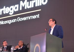 (260203) -- MANAGUA, 3 febrero, 2026 (Xinhua) -- Imagen del 1 de febrero de 2026 del delegado de la copresidencia nicaragüense, Maurice Ortega, hablando durante el congreso número 41 de la Confederación de Fútbol Asociación de Norte, Centroamérica y el Caribe (CONCACAF), en Managua, Nicaragua. El congreso número 41 de la CONCACAF realizado el domingo en Nicaragua fortalecerá la colaboración entre los países miembros y afianzará los lazos de amistad en beneficio del deporte, consideró Ortega. (Xinhua/Noelia Aráuz) (fc) (jg) (ra) (vf)